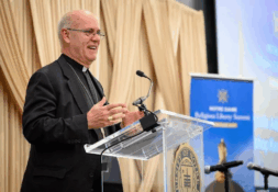 Archbishop Gintaras Grušas, Executive Producer of new documentary, visits Notre Dame to show film