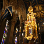 Under the apse of Notre Dame’s Basilica of the Sacred Heart stands a monumental altar topped by a golden tabernacle tower. The tabernacle’s design, based on the vision of the New Jerusalem in the Book of Revelation, has housed the Blessed Sacrament at the heart of campus since Fr. Sorin purchased it in the late 1870s.