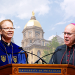 Speaking to the students of the Mendoza School of Business and the Notre Dame Law School, Bishop Rhoades advised them on remaining true to the ideals of tenderness, strength, and truth in the workforce: “Showing loving kindness in the worlds of business and law may seem like a tall task, but it basically means being a faithful disciple of Jesus in the workplace, treating others with respect, kindness, and compassion. It means witnessing to Christ and His goodness at work as well as at home.”