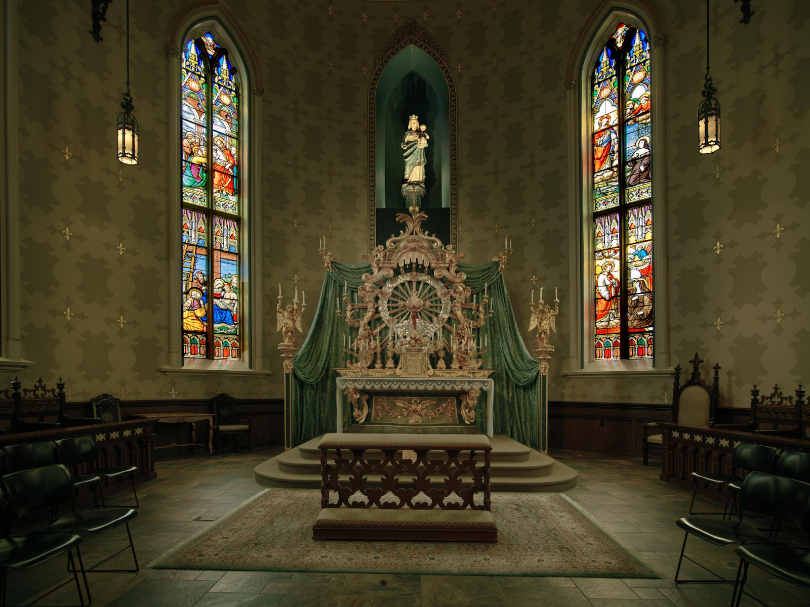 Tucked behind the main altar of the Basilica of the Sacred Heart, the Lady Chapel is a space of luminous beauty and devotion. In the quiet stillness beneath its vaulted ceiling, many find a place to pray a Rosary or simply sit silently in the presence of God.