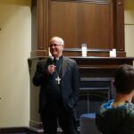 The bishop turned to the importance of Our Lady’s intercession, asking the Notre Dame community to “say a prayer or light a candle at her grotto.”
